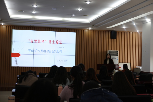 2019年11月25号下午,yl23455永利官网“青骢纵横”博士论坛第六十三期在文理楼457顺利举行,yl23455永利官网(华东)yl23455永利官网2016级博士研究生宗芳作关于“学术论文写作的几点心得”的学术报告,学院全体无课学生到场聆听。