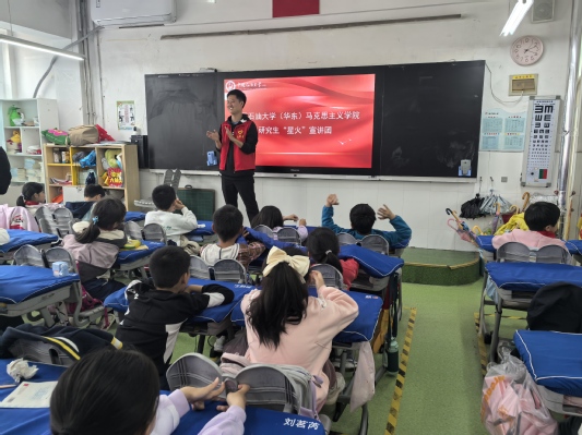 2025年5月9日,yl23455永利官网 “星火宣讲团” 6 名成员在王会老师的带领下首次走进青岛市西海岸珠江路小学,为四个班级的小学生带来以 “新民主主义时期中国共产党精神谱系” 为主题的沉浸式宣讲。活动围绕长征精神、沂蒙精神、鸡毛信的故事、南泥湾精神、大别山精神等精神展开,通过生动的历史叙事与互动体验,在青少年心中播撒红色基因的种子。