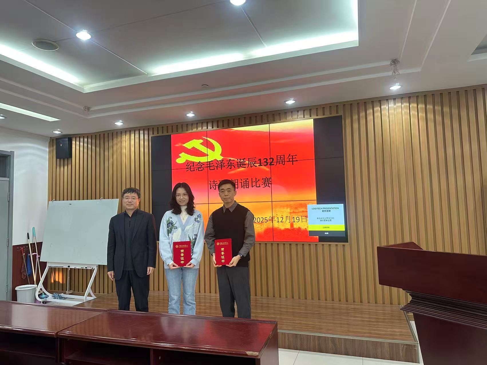 评委团从内容理解、语言表达、情感抒发、台风仪表等方面进行综合评分,最终评选出一等奖两名、二等奖四名。学院姚成郡书记对此次比赛进行了总结发言,对青年教师的精彩表现给予高度评价,鼓励大家以此次比赛为契机,深入学习毛泽东诗词中的革命精神和文化底蕴,将红色基因融入教学科研工作,以青春之力培育时代新人。